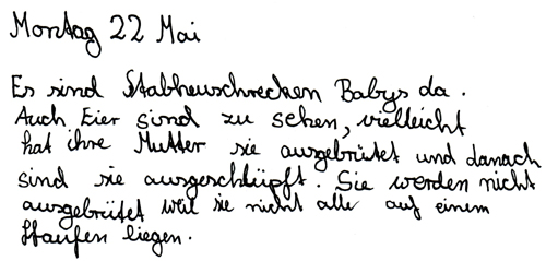 Abb. 7: Auszug aus einem Versuchsheft: Messung der Länge der Stabheuschrecken