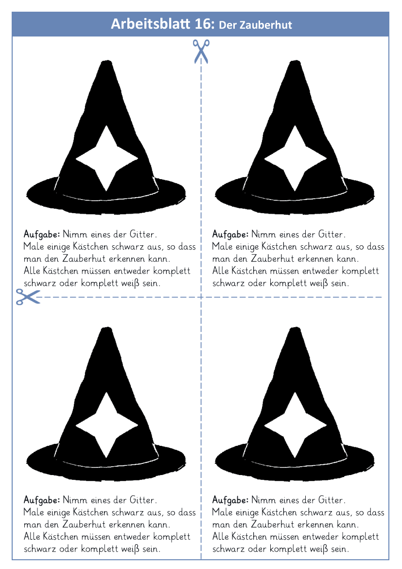 - 17: Verschiedene Gitter zum Zeichnen des Zauberhuts (pdf)