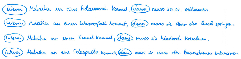 Beispiel: WENN Malaika an eine Felskante kommt, DANN muss sie hinunterklettern.